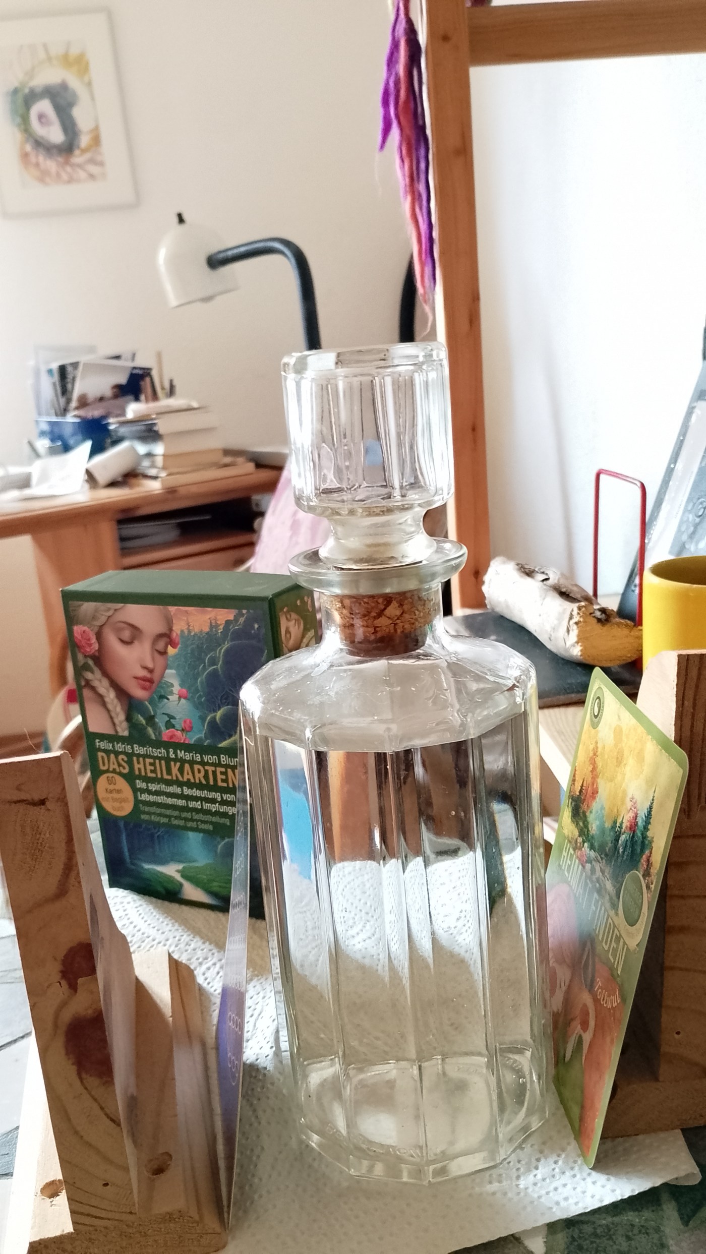 Ich bin schon seit zwei, drei Tagen dabei, mit dem neuen online Kongress Schritt zu halten und wende bereits das erste tool an. Das Heilkartenset von Felix Baritsch habe ich bereits und nun noch einmal ein schönes Interview mit Maria von Blumencron gesehen, in dem sie die Anwendung erklärt, mit der sie Heilwasser für sich und ihre jeweiligen Heilprozesse damit herstellt. Es macht sehr viel Sinn und orientiert sich am homöopathischen Prinzip, bei der sich die höheren Potenzen im geistigen Bereich bewegen und somit auch geistiges Heilen zu diesem Prinzip zählt. Sie hat die wunderschönen Bilder entwickelt. https://summit.mathiasberner.de/interview/maria-blumencron/