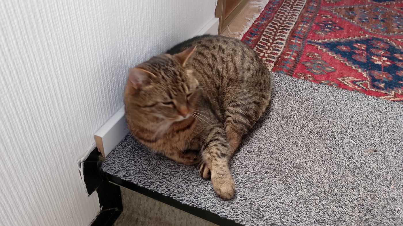 Bei mir ist Martha eingezogen, eine dicke gemütliche Tigerkatze, die schon Monate draußen lebte. Sie traute sich endlich durch die Katzentür, – also nicht, dass meine anderen das toll finden, sie ist unglaublich verfressen- und verzog sich sogleich nach oben in die leere Wohnung, damit sie bloß keinen stört. Vielmehr , sie legte sich in das Gästebett….