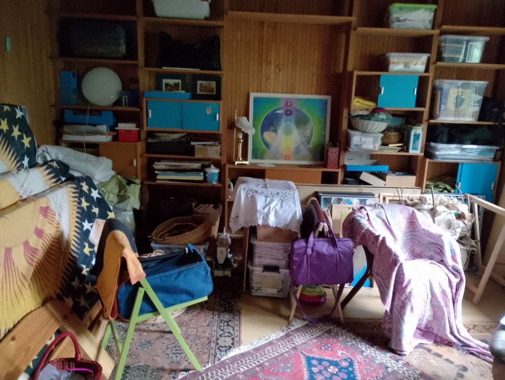 Und gerade ließ ich mich von Gerda http://gerdakazakou.com/ inspirieren, und füge dem Chaos noch etwas mehr Buntes hinzu.Kein Wunder, dass mein Kofferzimmer so aussieht, denn in der zuvor leerstehenden Wohnung ist jemand eingezogen. So musste alles, was mir aus den Augen sollte, wieder zu mir….