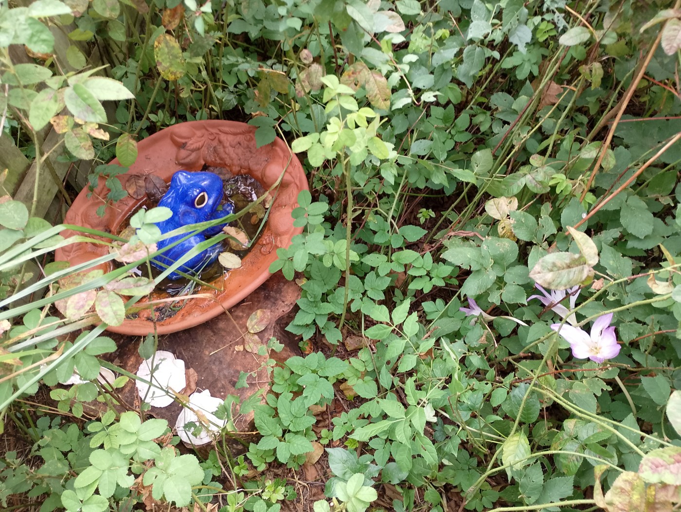 Das musste nun sein, denn auf dem Bild ist die eine Herbstzeitlose, die noch durchgekommen ist. Hier wuchert einfach alles ganz schön dicht. 10 Jahre lang kommen die schon raus.