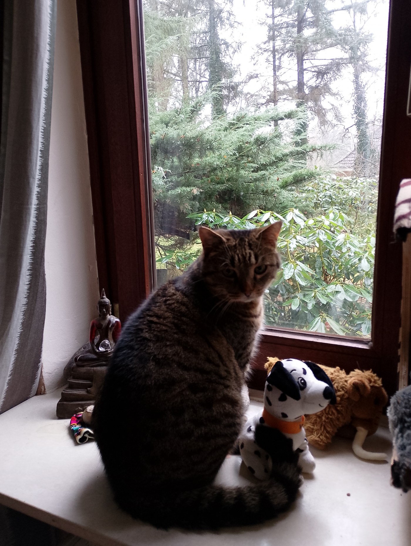 Nun, nicht wirklich. Wir gucken raus in den Regen und sind ein bisschen unzufrieden. Aber da es warm und kuschelig ist, gibt es auch keinen Grund zum Jammern. Die „Katzenjammerkids“ sind ein comic aus dem New York vor mehr als 100 Jahren. https://www.deutschlandfunkkultur.de/einer-der-aeltesten-comics-der-welt-125-jahre-katzenjammer-kids-in-neuauflage-dlf-kultur-1b0f74d4-100.html