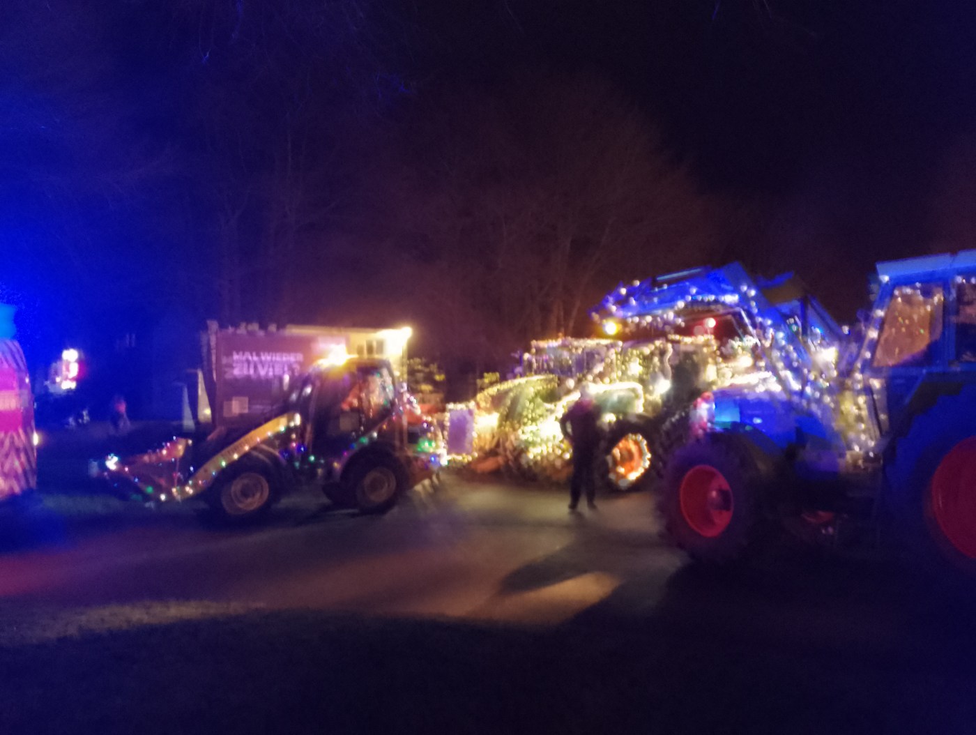 Wie Wünsche manchmal wahr werden…ich schrieb doch gerade noch von asiatischen Busbahnhöfen. Vom Dieselgeruch und so….Gestern fuhr ich ahnungslos Richtung Nachbardorf, als ich in die weihnachtliche Treckerparade geriet. Ach herrlich! Hundert Menschen säumten die Straße, es blinkte und lärmte und so voll habe ich den Ort noch nie gesehen.