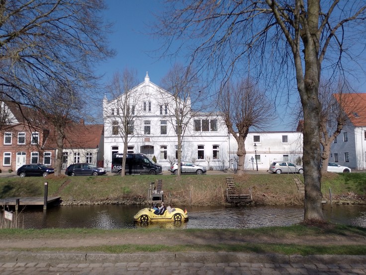 Bilder von der Stadt gibt es morgen, das passt nicht immer zusammen. Ich muss da noch mal hin. Strahlender Sonnenschein soll nur heute sein, viele Eisesser, viele Hunde jeder Art und Größe, und nur ein Paar paddelte mit dem Kanu durch die Kanäle. Es gibt mittlerweile etwa sieben Cafes in der gleichen Straße. Und die sagten, sie waren mittags schon mit Torte ausverkauft gestern. Das Krähenkrächzen immer im Hintergrund, man merkt es gar nicht mehr.