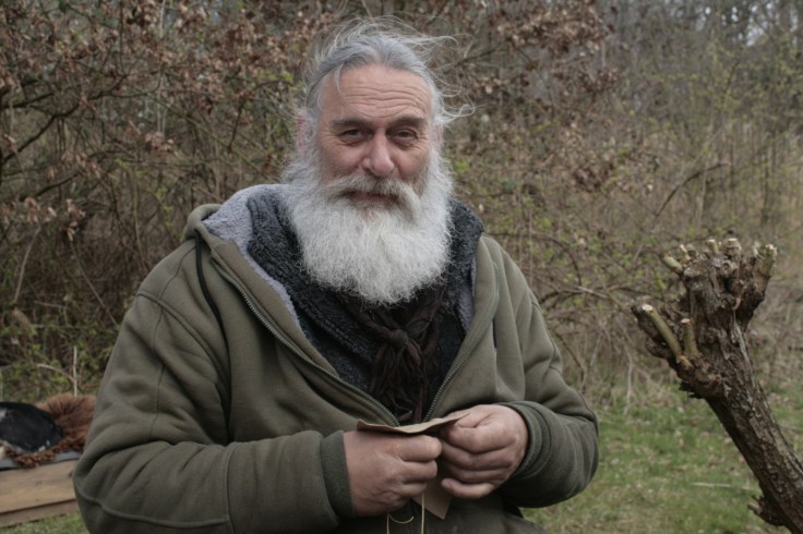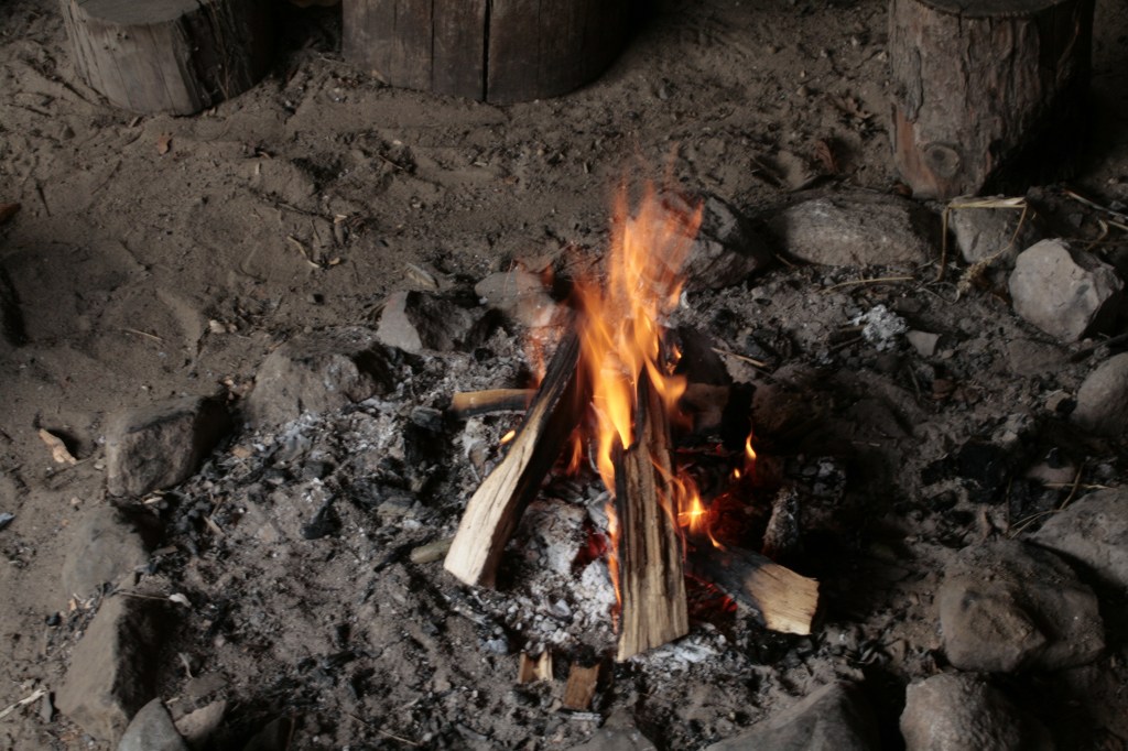 Sowohl bei ihm als auch in der Hütte am Wasser brennt ein Feuerchen.