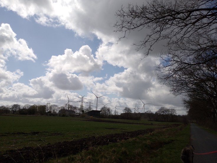 Da sind die Windmühlen, die im letzten Beitrag schon erwähnt wurden. Auch die Landwirtschaft ist eine Industrie, und sie erfordert Wissen, Erfahrung, einen großen Maschinenpark. Einen kleinen Traktor hat jeder, der seine Heuballen zum Pferd bringt. Die großen Zugmaschinen befördern Güllebehälter und Dünger, Ernten und Erntegeräte, im Moment dann Pflanzkolonnen. In Wesselburen gibt es eine Ansiedlung von Roma, die für die Bauern arbeiten. Große Familien. Der Kohl ist ja das Wahrzeichen der Dithmarscher Bauern. Er ist schwer, so ein Kohlkopf.