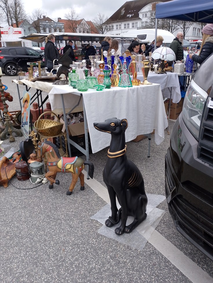 Ein Sonntag ohne Sonne ist dennoch nett, wenn man unter Leute geht. Sich treffen und gucken, da sind zwar viele Sachen, die auch erstaunen, aber immer wieder diese Menschen, und ihre Hunde und das heute auf gleich zwei Flohmärkten. Der eine auf dem Dorfe, da kannten sich viele.
