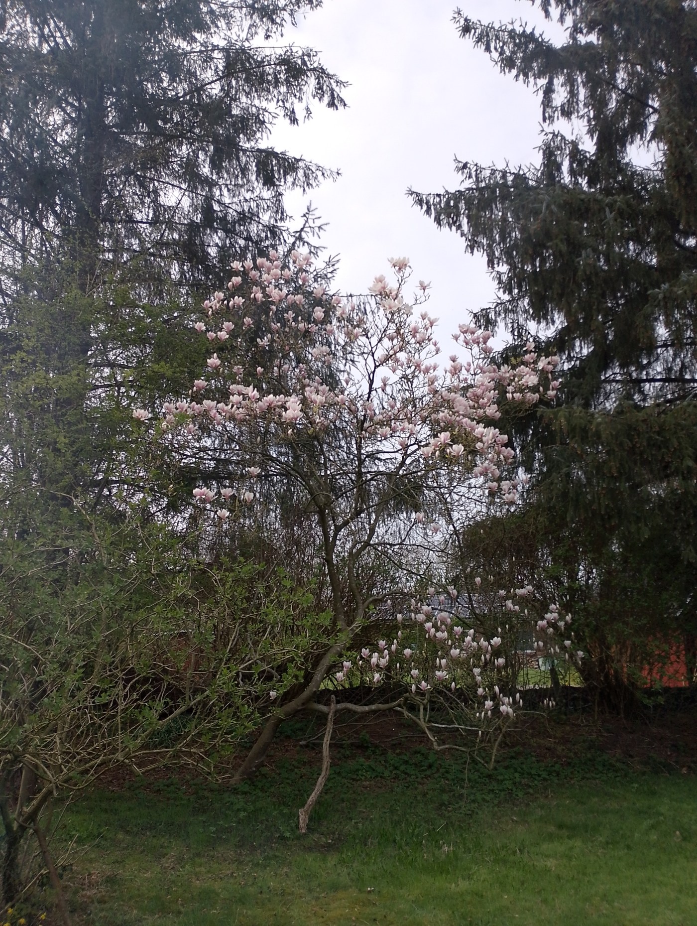 Die Magnolie blüht jedes Jahr zur gleichen Zeit, in meiner Fotoapp kann ich sehen, dass es letztes Jahr etwas wärmer war, aber beim Maifeuer regnerisch war. Ich muss nämlich zugeben, dass ich das nicht mehr wusste- einfach vergessen! Aber Maifeuer gibt es wieder.