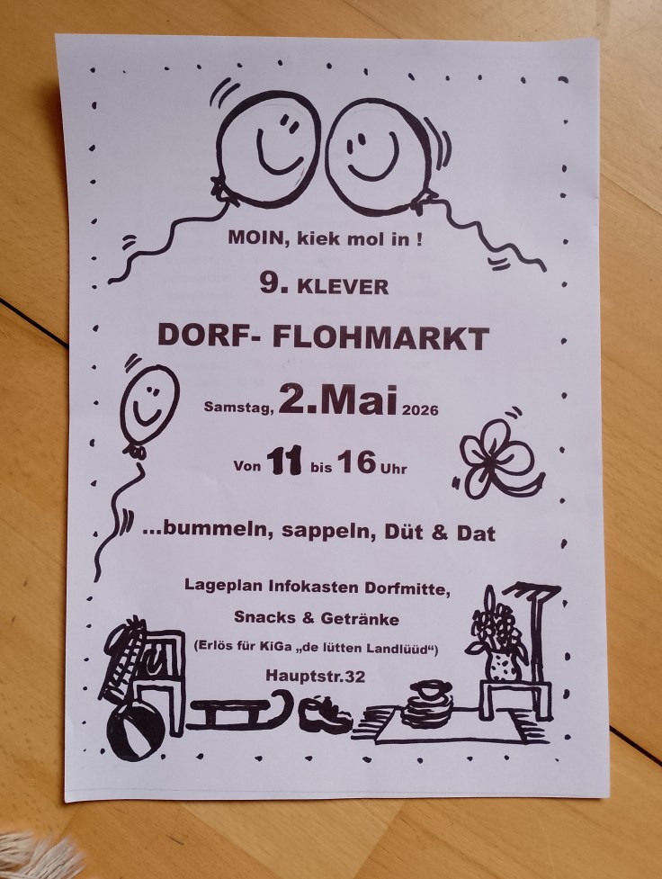 In meinem Kalender steht der nächste Flohmarkt, an dem ich sogar teilnehme mit ein paar Kisten Büchern, nur um dabei zu sein.Letztes Jahr habe ich die einfach hingestellt zum Verschenken, das war einfach. In Ostrohe war ich gestern, doch das Dorf war so groß und voller Autos, dass ich es nicht schaffte, zum Hof der Künstlerin vorzudringen. Dann lieber ein anderes Mal. Ich begegnete einer anderen Künstlerin, die den Schriftzug „Kunstgriff“ am Stand prangen hatte. Das ist ein bekannter Künstlerzusammenschluß, bei dem Viele jedes Jahr im September ihre Ateliers öffnen. Die Wiederholung macht schon Sinn, um sich etwas einzuprägen.