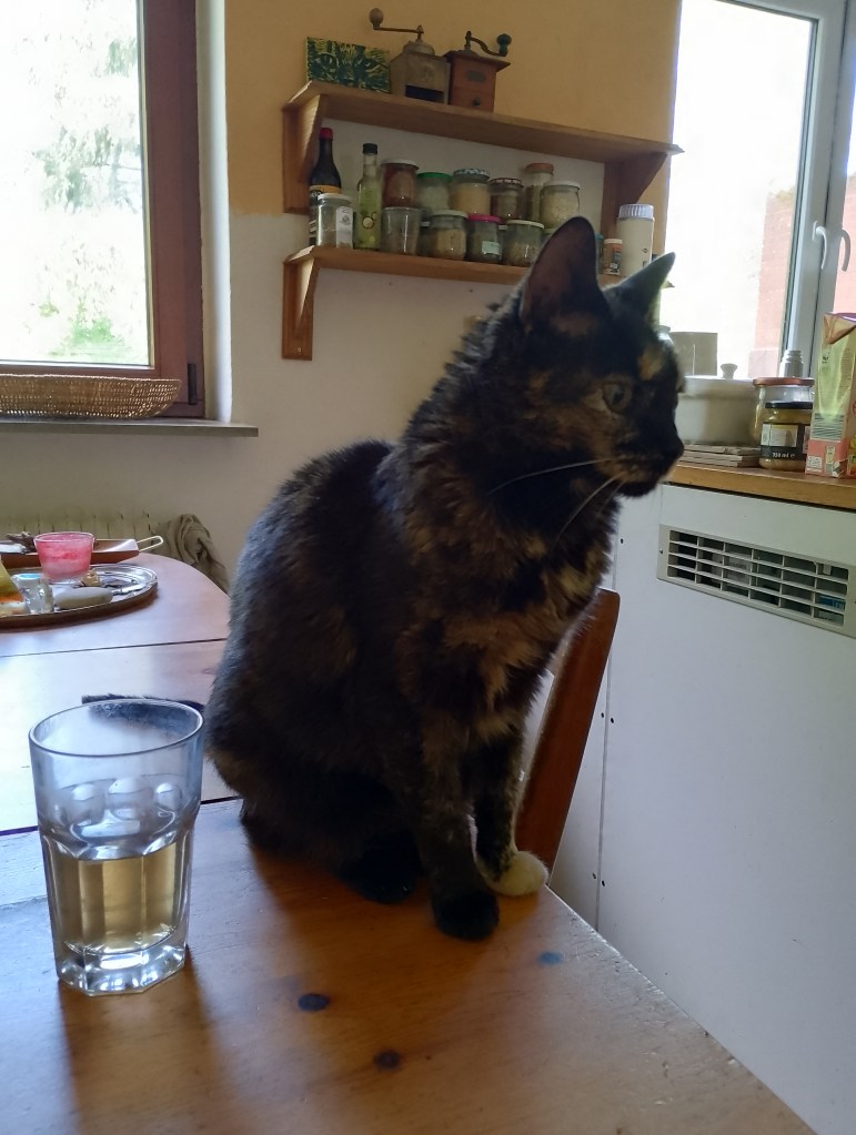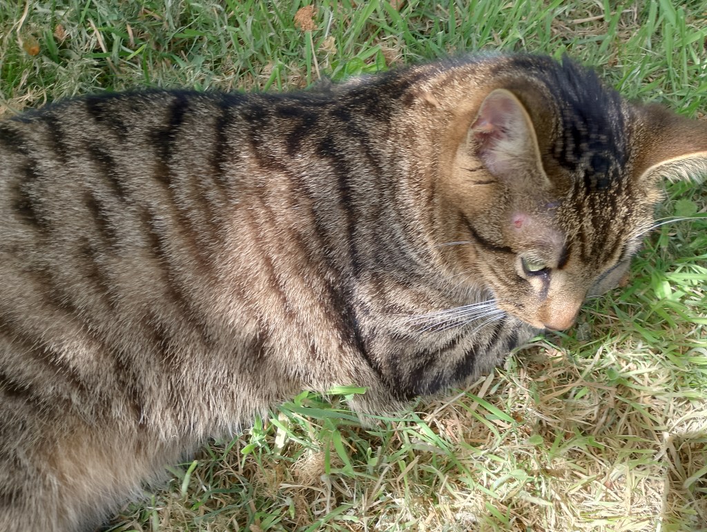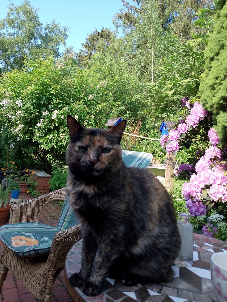 Soeben wurde meine Jungkatze Chilli wieder von der Nachbarkatze gejagt und knallte durch die Katzentür. Nun ist der Garten recht groß und im hinteren Teil ganz wild, was natürlich der Nachbarin gut gefällt. Ich glaube sie heißt Püppi, völlig unpassend. Sie lauert den meinen schon gern in der Garage auf, guckt was es zu fressen gibt…in ihrem eigenen Garten gibt es Rasen, Berge von Kinderspielzeug und Kindergeschrei. Sowie einen Zaun zur Hauptstraße. Ich finde es sehr schön, dass es junge Leute wieder gibt.