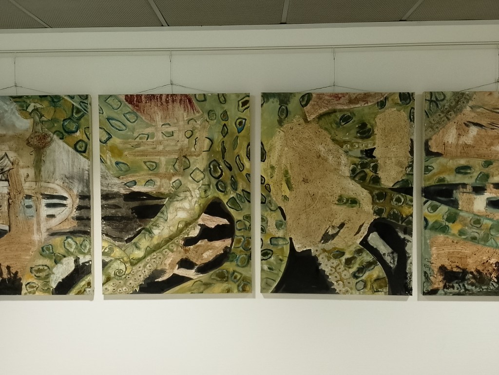 Der Sturm tobt seit heute Nacht ums Haus, doch das Wochenende war noch schön und sogar ein Flohmarkt fand statt. Daneben war so viel los, dass ich gar nicht hinterher komme. Erst die Eröffnung des Kunstgriff, kein sonderlich schön gestaltetes Event, eben vom Landrat im Kreishaus Heide, naja. Da hingen aber doch tolle Bilder, von jedem der teilnehmenden Künstler eines, es gab die Broschüren mit den Terminen in den einzelnen Ateliers über die nächsten zwei Wochen.