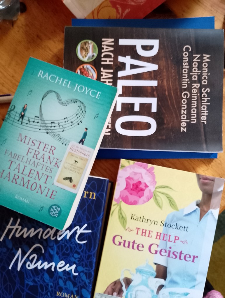 Ich fegte also die Blätter, als es zwischendurch aufklarte. Der Sturm ist mal wieder vorüber, der Vollmond heute früh, und es wartet eine lange dunkle Weile. Ich las auch gleich wieder zwei Bücher, jeden Tag eines.