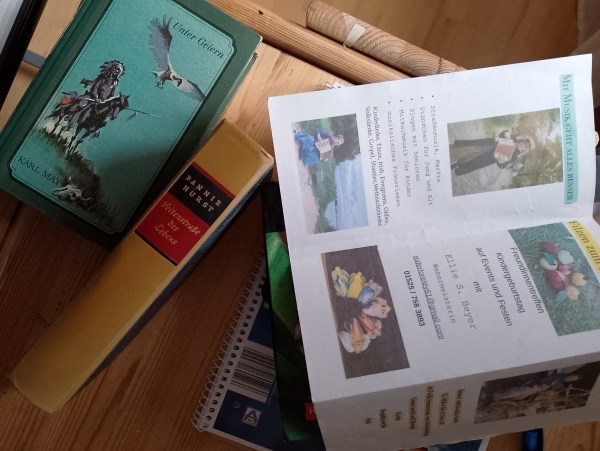 Nun doch noch einmal einen Karl May Band in den Händen zu halten….wie kleingedruckt, wie ausführlich die Landschaftsbeschreibungen und die Indianerromantik…Ich habe sie alle verschlungen als Kind. Irgendwie spielte es keine Rolle, dass es da nur Männer gab. Das was sie taten, wollte ich auch erleben. Mit dem Wissen, dass Karl May nie dort war, und seine Bücher im Knast schrieb, möchte ich das nicht wieder lesen!