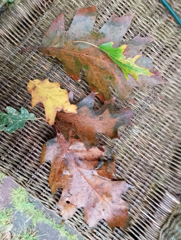 Was kommt mit dem Herbst einher- das Blätterfegen. Vor allem die Eichen vom Dorfdenkmal werfen nun ihr Blätterkleid ab und es wird immer in unsere Straße geweht. Nach und Nach. Da diese Blätter nie verrotten, finde ich sie noch im Frühjahr zwischen den Büschen.