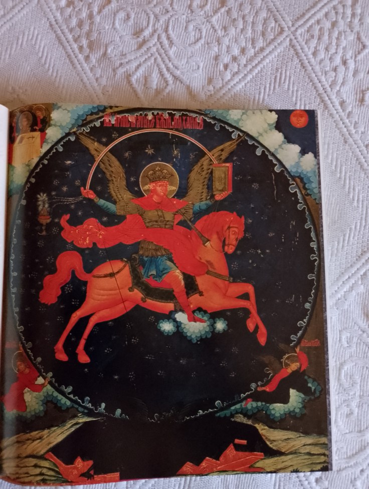 Es handelt sich hier um Erzengel Gabriel als Herrscher des Firmaments, (Palechmalerei, um 1700, aus Fabeltiere & Dämonen, Die phantastische Welt der Mischwesen,Heinz Mode, Edition Leipzig 1973)