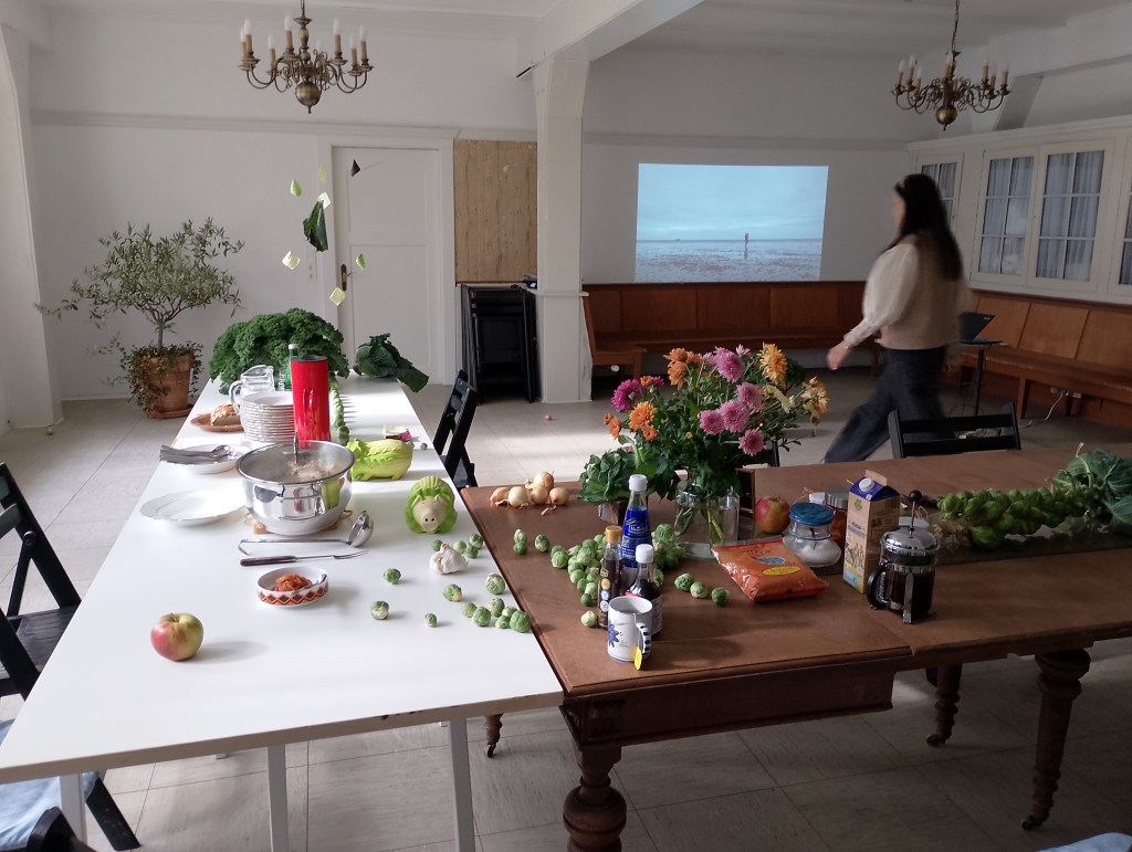 Und genau deshalb treiben sich deren Geister noch in den heimatlichen Gefilden herum. Sie wollen ja gesehen werden. Viel schöner ist da doch der Besuch in historischem Gemäuer, ein Altes Internat in Lunden, wovon ich schon einmal berichtete. Frauke Materlink veranstaltete wie jedes Jahr ein kleines Kunstevent , gemeinsam mit anderen Künstlerinnen aus Südkorea und Norwegen. Es drehte sich um den allgegenwärtigen Kohl. Die schönen jungen Frauen hatten sich etwas ausgedacht und dazu ein wunderbares Essen gekocht, wir saßen am langen Tisch mit anderen Menschen, bekamen erklärt, wie Kimchi gemacht wird und sogar noch ein Glas davon mit nach Hause. Ein so herzerwärmendes Ereignis!