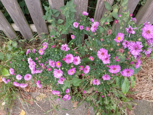 Die Astern sind da. Doch ich ging los, um das Straßenschild abzulichten, weil das alltägliche Bild uns gar nicht mehr auffällt.