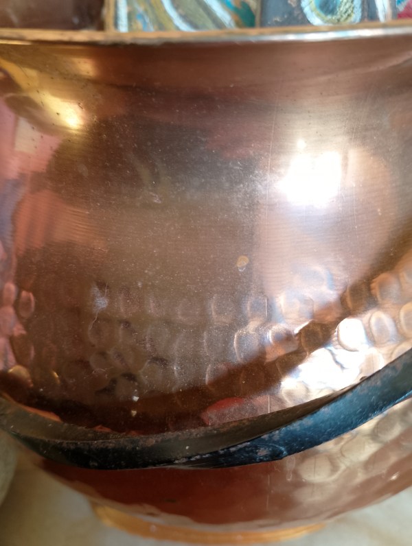 An den Kupfergefässen auf dem Flohmarkt kann ich schwerlich vorbeigehen…es ist nicht nur die Farbe. Es gibt ja nun auch moderne Kupferthermoskannen. Das Foto bringt es nicht richtig herüber…