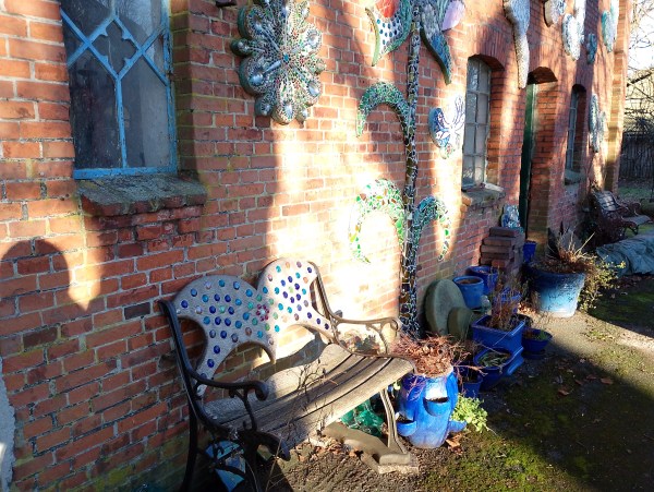 Mir macht es viel Freude, hier die Reisen und täglichen Bewegungen der Bloggemeinschaft zu verfolgen, teilzunehmen an anderen Orten, es ist viel schöner als Zeitung lesen. Das echte Leben. Aber sicher habe ich mir die herausgesucht, weil sie mir nahe scheinen. So wie mein Nachbar mit den Mosaiken am Haus.